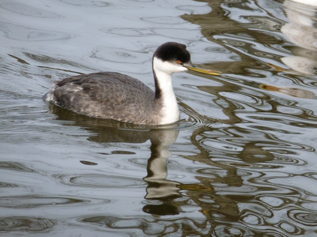 Lil Grebe has been around for the winter. Really friendly. Grebes usually dive when anyone comes near. Someone forgot to tell this one that he’s not a mallard. I think he has a broken bill. I like having a grebe in our little raft of birds! (taken from our dock)