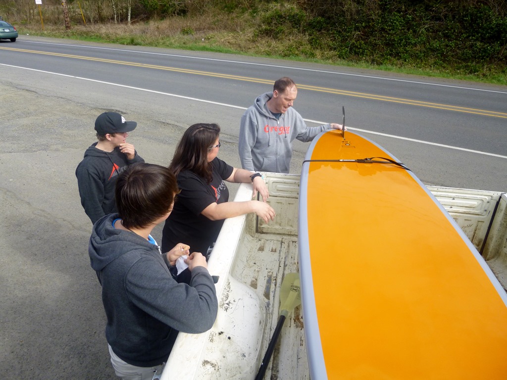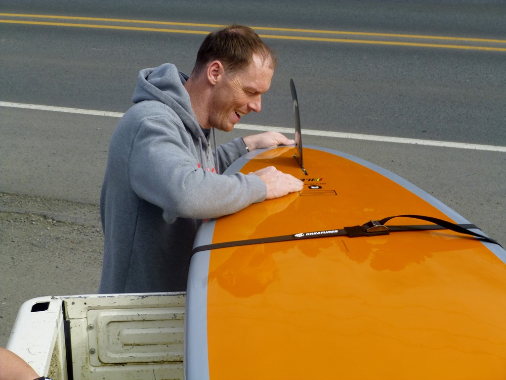 Next Step – Load it up in the truck. Nate used his Birthday Oregon Surf Shop Gift Card from a friend to buy me some new straps. No more crazy garage tie downs. We’re Legit.