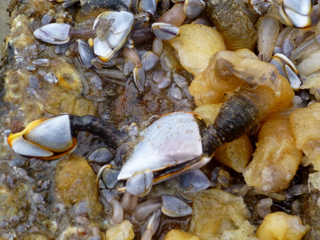 If the tide is low enough, the brave and tide/current aware may hike around the tip to what we like to call Mystery Beach. With hubby’s broken shoulder we hung back, and the water wasn’t quite low enough to go easily, so Nate and I just peeked.