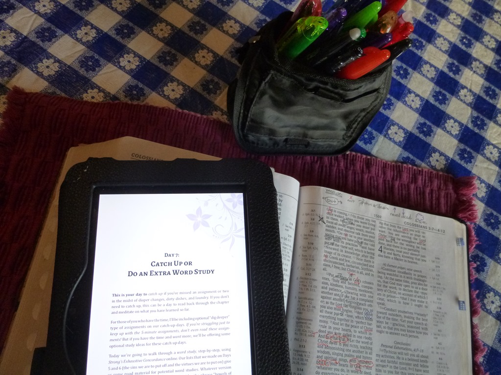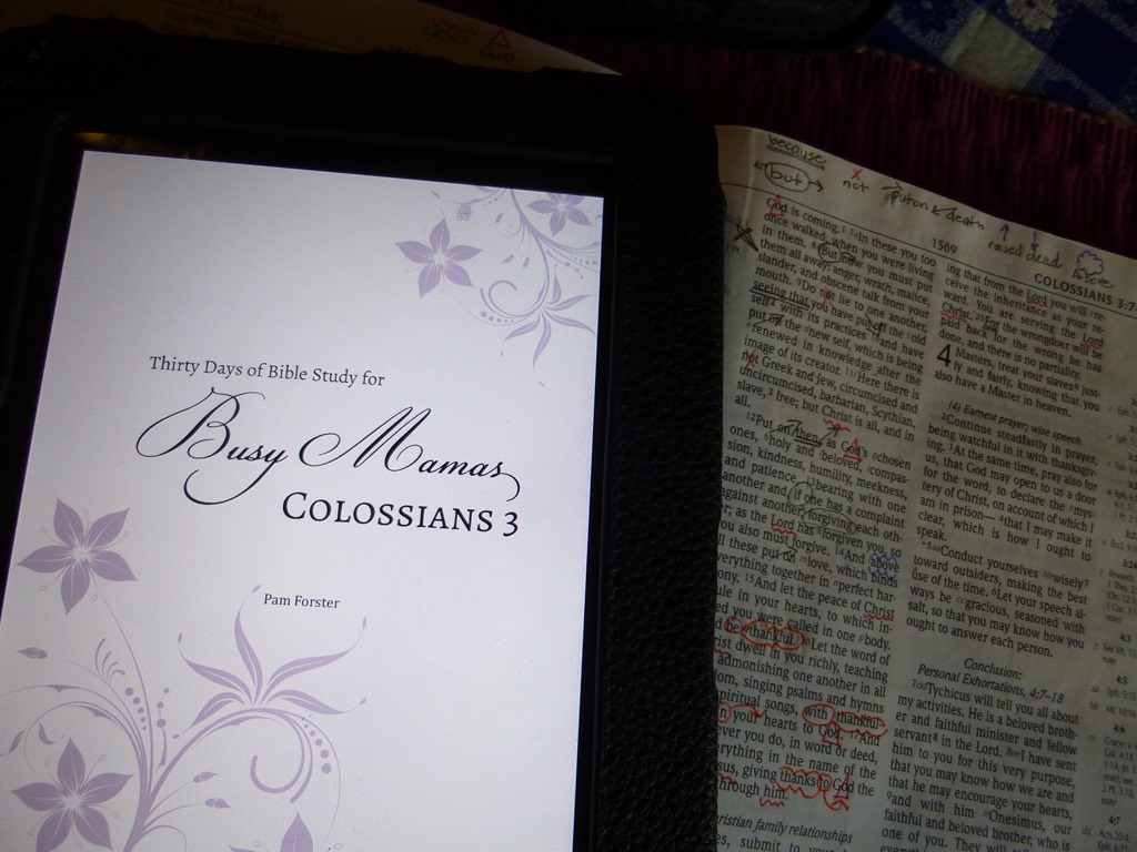 I really enjoyed the Month of November with this Study. I am pleased that it was put in a book style. If I missed a day, it did take time to go through the blog posts to pull them out in order. Sometimes when looking for the post, an email would flash by or topic on Facebook and I’d be distracted. It is nice to be able to sit with the Kindle or Book and be intentionally focused. I could write several blog posts on what I gained out of Colossians 3 for sure. Thank you Pam Forster for writing these studies out for us!!