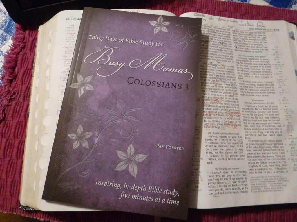 November is a busy holiday month for moms. Knowing this, in late October, Pam Forster challenged us, her blog readers, to stay in the Word for 5 minutes a day. Then, she gave us to tools to do so. Each day she would post a portion of a precept on precept style Bible study focused on Colossians 3. It is my joy to partner with them this this morning, to share with you that Doorposts created a soft cover beautiful book with the Thirty Days of Bible Study for Busy Mamas for you to purchase as a book!