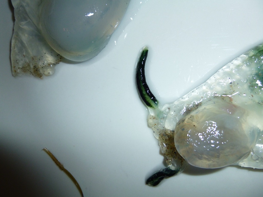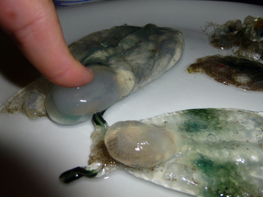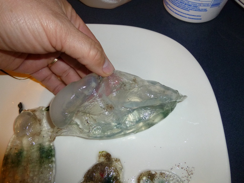 On the 12th of March, Nathan found a strange piece of rubber like jelly fish with a tentacle on it. We posted the photo on Facebook and asked our What Is It question. (I like having my homeschool mom friends on my personal FB page. When I’m quiet here on the blog, it is probably because I’ve been chatty over there.) One of my friends came up with the answer – A Salp. (Article). If you Google Image search for Salp – the images are amazing! They are linked together in these really long chains.