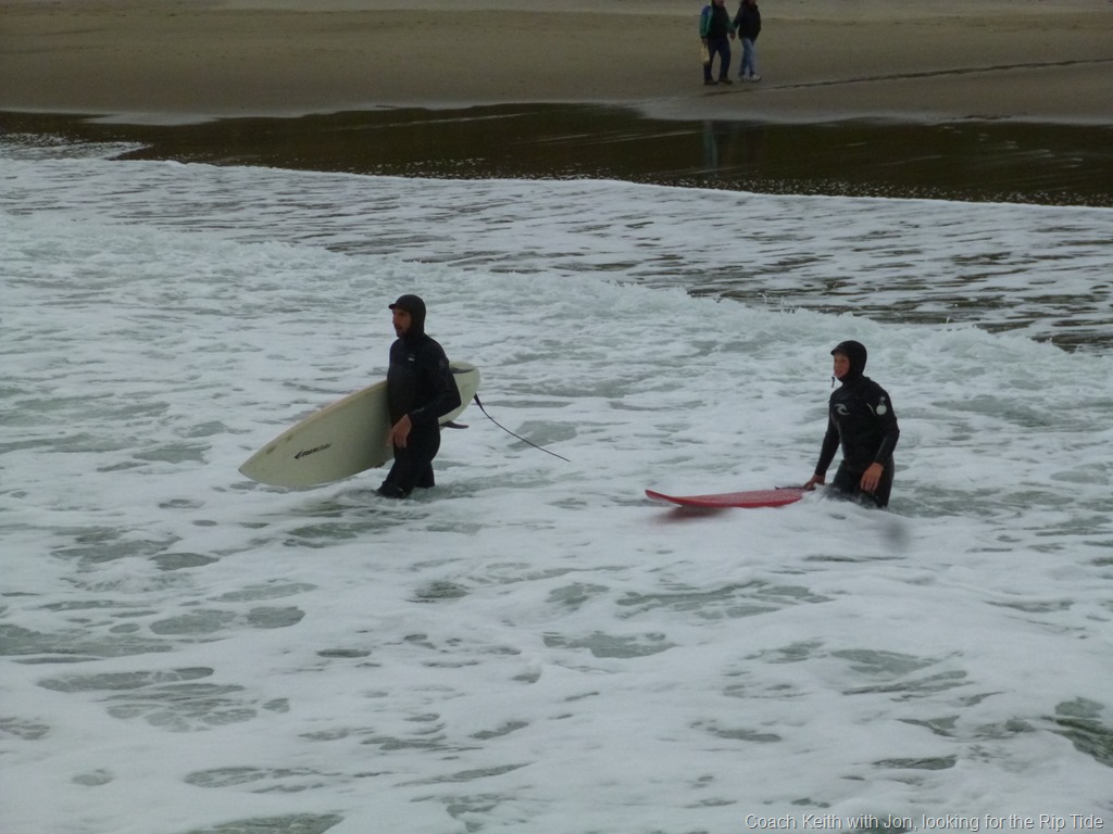 We had a professional watch the boys swim in a safe community pool. He helped to assess if they were able to tread water / swim unassisted for at least a half hour without touching. This was important to me. If they get separated from their board, and pushed down shore, they need to be able to float and swim and catch the swells back to shore.