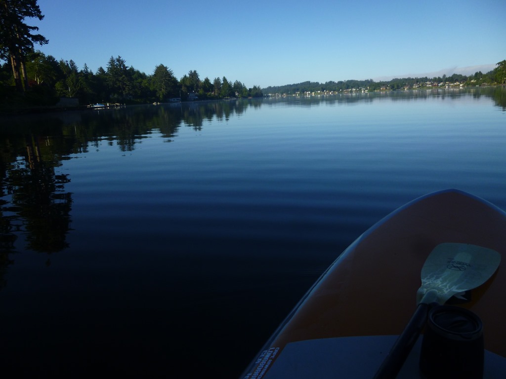 We live on the east side of Devil’s Lake. It takes bit longer for the sun crest the hill to our east, and then all of the Sitka Spruce Trees lining the lake. I have to push out a bit to get into the Sunshine.