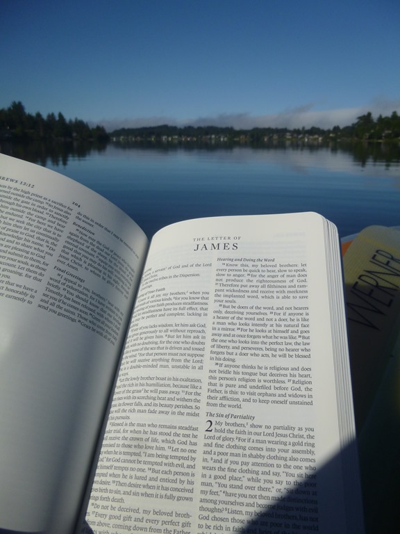 I was halfway across the lake when I remembered that my new waterproof bible was still sitting on our deck. Mandisa helped me cross the lake and back quickly, then I ran up the stairs, refilled my coffee mug and grabbed the new Bible.