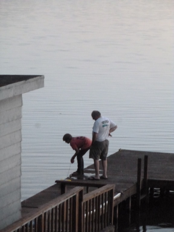 Jon and Nate after an hour of making a crawdad trap. They used several containers, we’ll see in the morning if this one worked. There are several, in eye sight, by the dark. However, That’s somehow not sporty. So we trap them.
