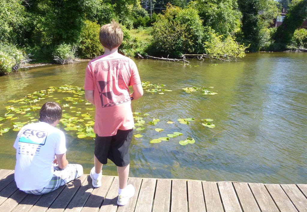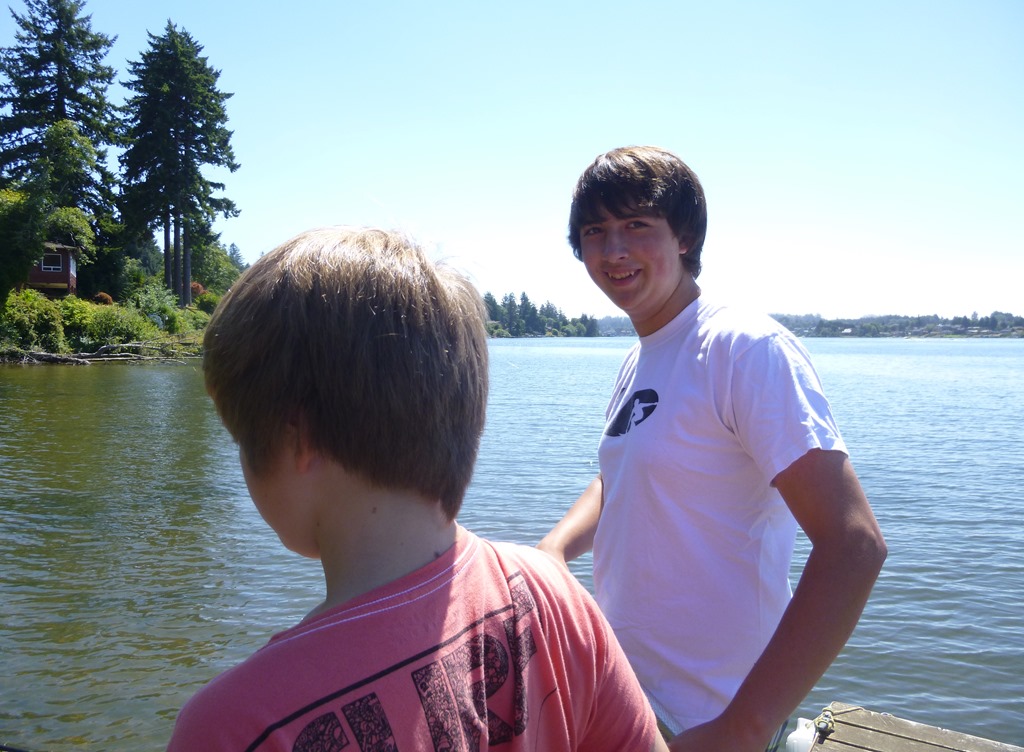 Jon came up with a bucket of crawdads, super excited to show his dad. Next thing you know we were all on the dock trying to catch them.