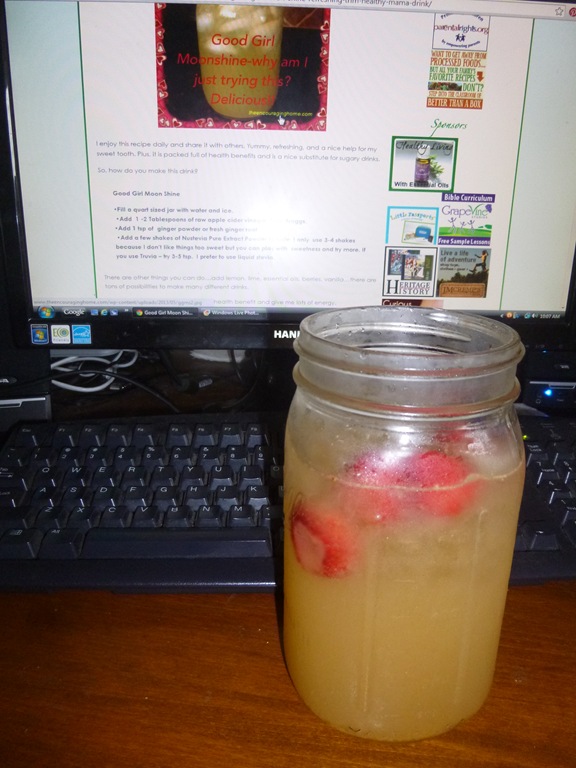 This week I am going to try more of their drinks. Today, the photo above, is for the Good Girl Moonshine. http://www.theencouraginghome.com/2013/05/28/good-girl-moon-shine-refreshing-trim-healthy-mama-drink/