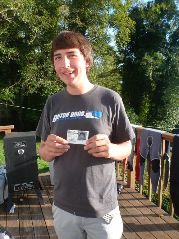 Goofy grin of a very pleased goofy boy. He has been working on studying for his Driving Permit, but has not wanted to go take the test. Last week he found out that he needed picture ID to get the job at the Community Pool. $43 dollars for ID, $23 for a Permit. He studied up and got the Permit!! Then we headed to City Hall (His employer) to sign paperwork for the new job. He has had one other job with paperwork, but this was the most he had ever seen. Ha. He’ll start Weds as a lifeguard at the pool.