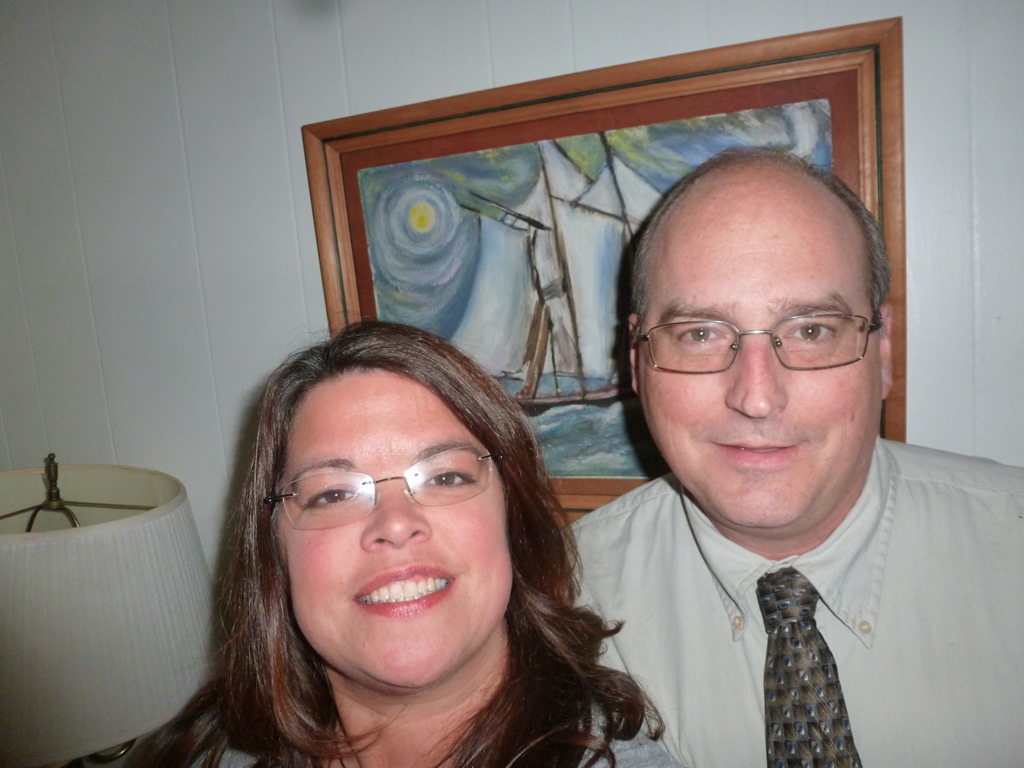 My silly hubby and his one eyed wife taken this morning by our oldest son.