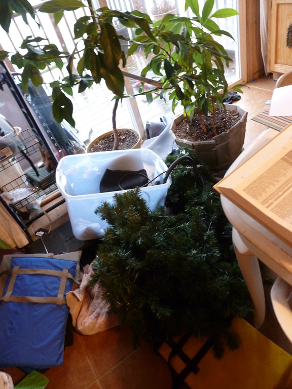 We need to get a container for the Christmas Tree. For now it is a wreath for the floor. . . .