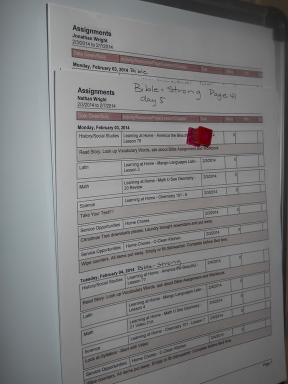 So as the Monday pre-dawn is on the horizon – I’m excited for a fresh new start. Lesson Plans are written out. That’s the main thing for us. Nate says he does better with a list for the day. Jon can pretty much only get through his work with a list. What do you use to communicate your educational goals for the week?