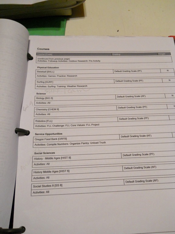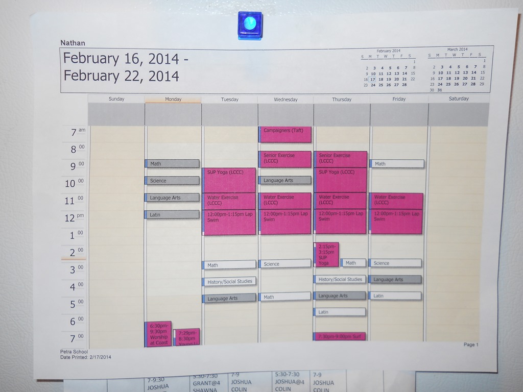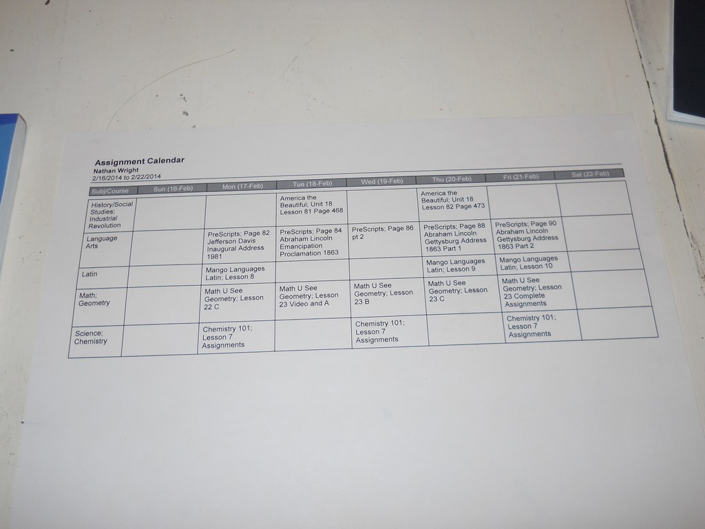 So this led to re-vamping up our schedule keeping. I’ve been doing it on paper the last year. Each morning I write the day’s goals on the white board in the dining room. This is becoming a bit of a hardship, spending too many hours figuring out which lessons are coming up, which pages, which . . . . sigh. I turned back to my long time friend Homeschool Tracker. It has been so delightful to sit down once a week, look through the upcoming assignments, and plug them in. With HSPlanner Plus the calendar work is so much easier. I can put in Nate’s work schedule and activities, and then plug in his learning assignments around those times.