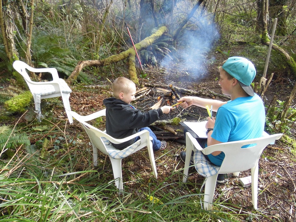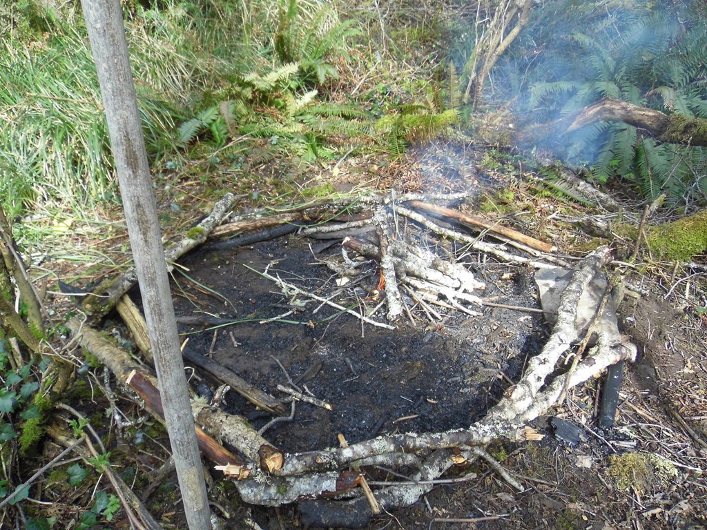 Meanwhile, my son clears a spot in the forest for a little fire. He made the circle so the little visitor would keep safe.