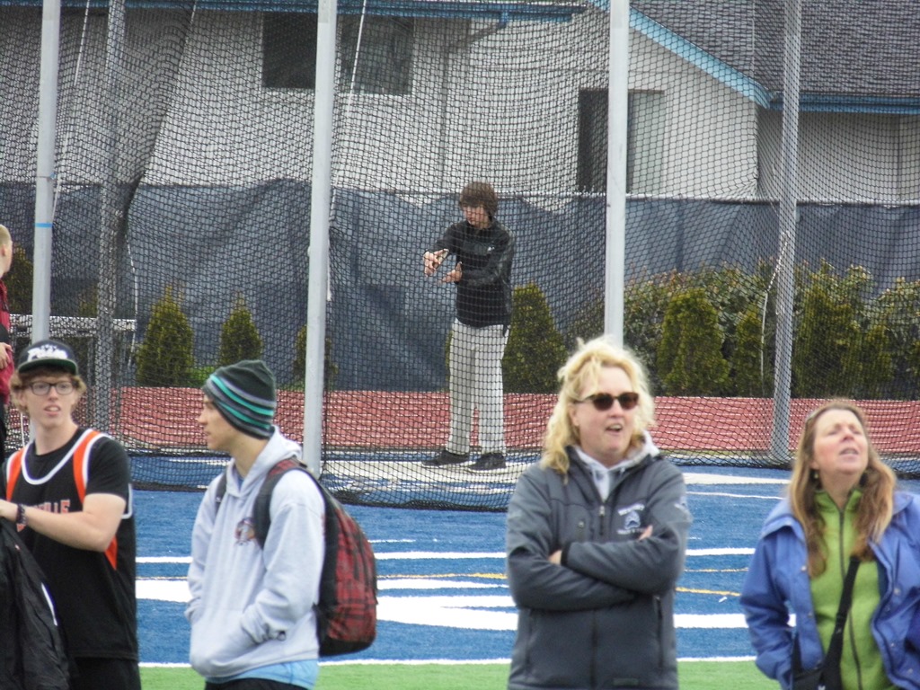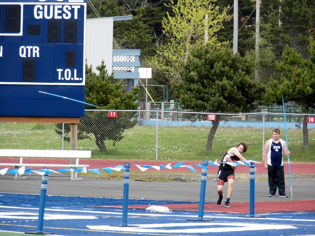 Kind of weird sitting in the stands with 4-5 different schools to watch these games. I went to Marshfield High School in Coos Bay, home to the famed Steve Prefontaine. We have friends that ran track in high school with Steve. We hold the annual Steve Prefontaine run each fall. I never pictured my laid back son in track. I forgot there is ‘field’ involved – throwing. So he is doing Javelin, Shot-put and discus.
