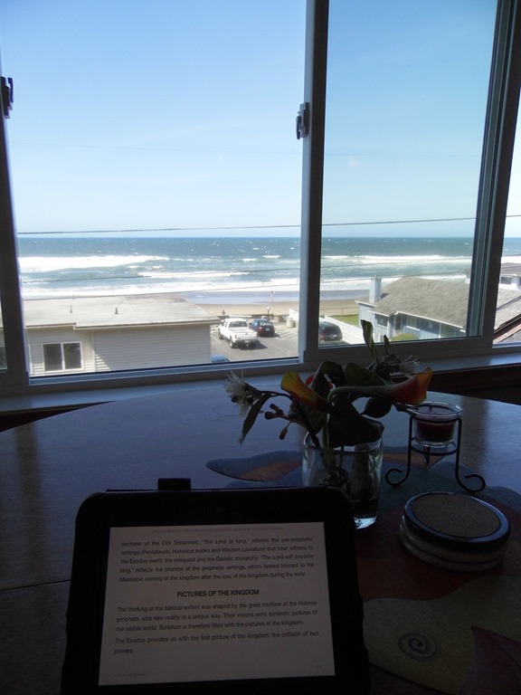I started working as a cleaner at a small 5 unit complex. Cute little clean suites. Overlooking the ocean. Working for Christian Surfers. What could be more fun? One of the pay backs comes when a guest leaves a note telling us how much the unit was an answer to prayer and really blessed their family. Makes me happy! I enjoy an hour or two away, over the ocean, listening to music on my Kindle or a book on tape. It has been enjoyable.