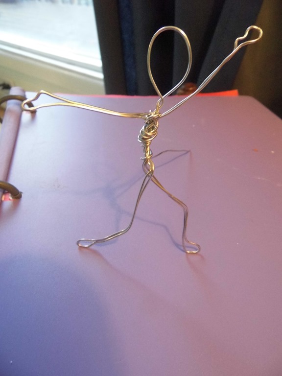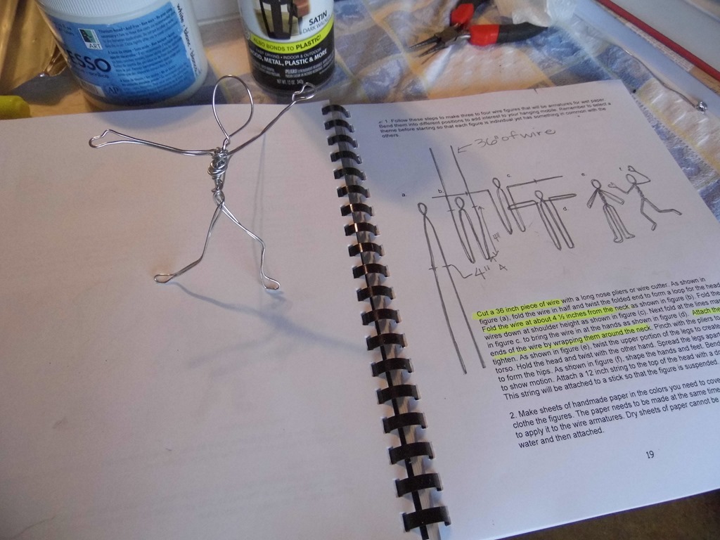 We started with Unit 1 Project 3, Wet Paper Construction. We used this project to teach us how to mold the wire into people. The instructions are broken down into bits. The measurements and descriptive words helps to guide the artist well. Simply doing exactly what the text says created a replica of the person.
