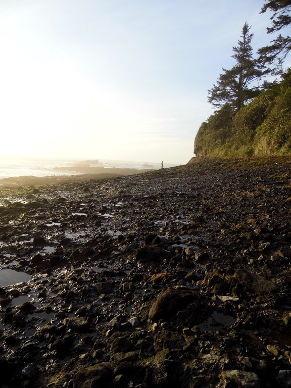 This is the cliff that one scales down. There is a path with rocks to climb on. Some people stop by a supermarket on the way home from a track meet, we stop by the ocean. Have I mentioned lately how much I love being a homeschooler on the Oregon Coast?