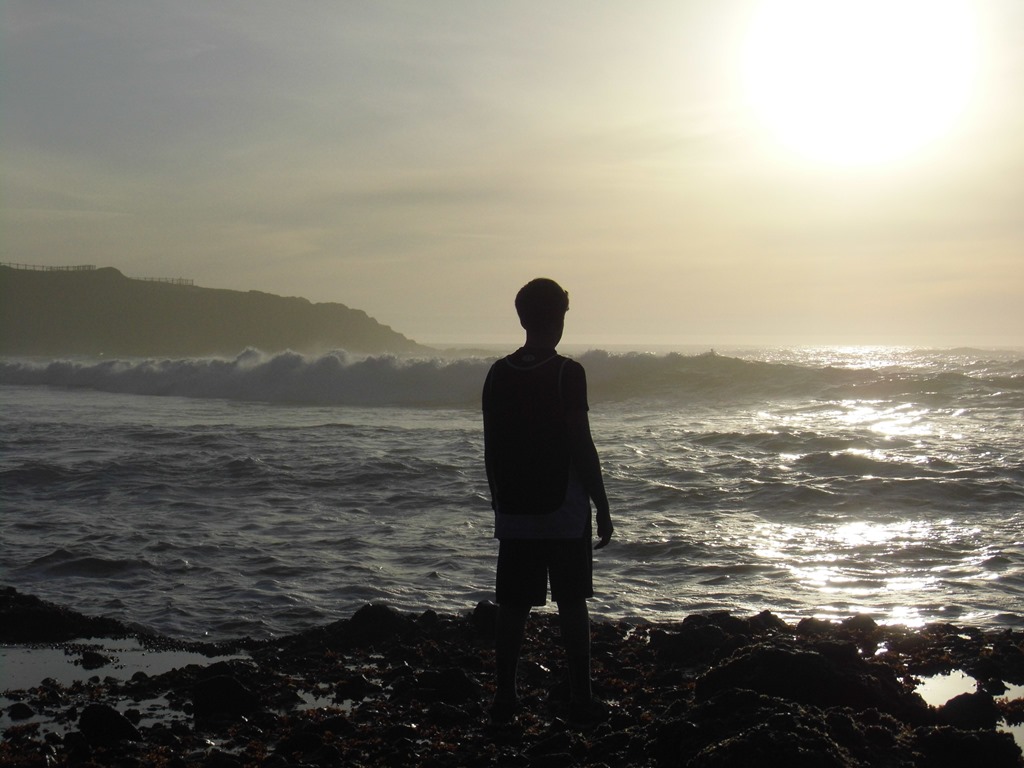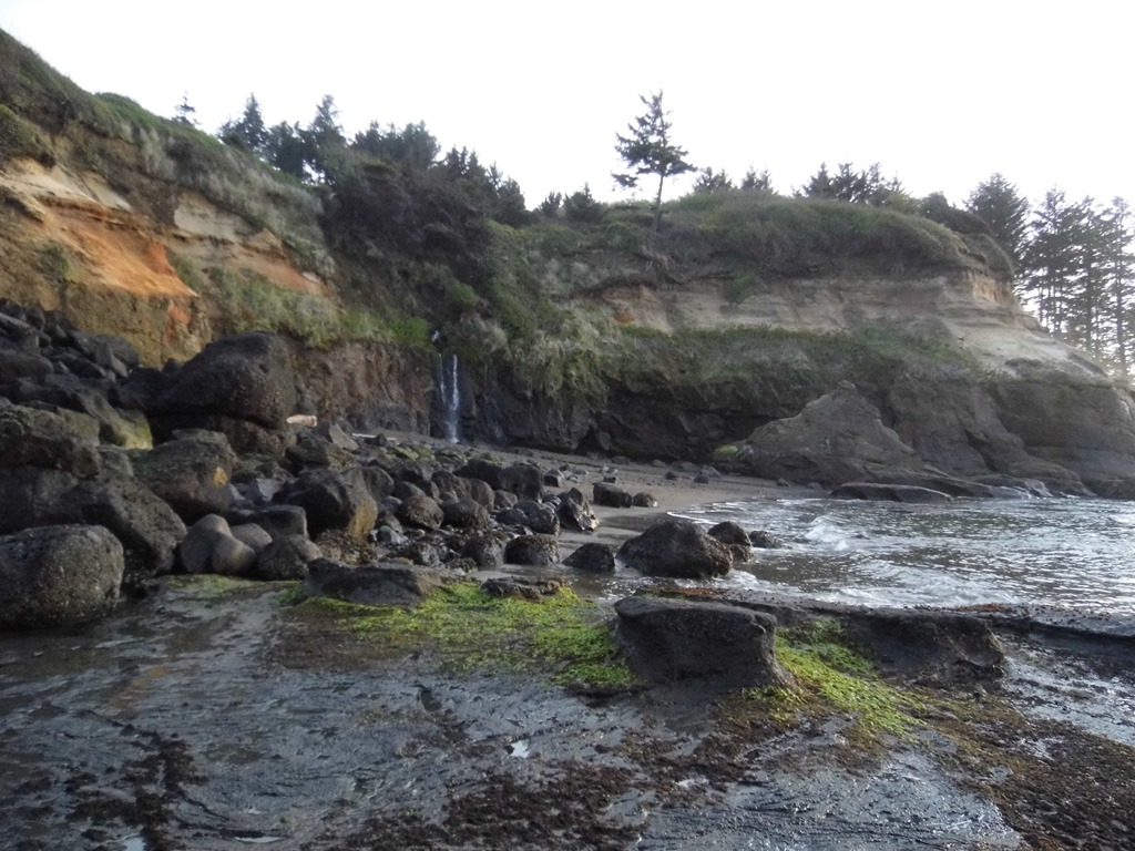 Jon asked to pull over on Hwy 101 after a Track meet in Newport just north of Depoe Bay – at a place called Boiler Bay. We took a side gravel parking space and hiked slid / climbed down the hill.