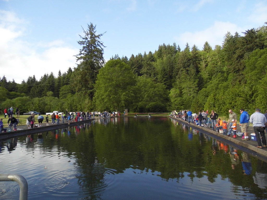 Another beautiful day in Oregon, bright and early, to line up for Free Fishing Day put on by the Oregon Department Fish and Wildlife, ODFW and our own local Lincoln City Community Center. We left with our coffee, gear and a lunch box at 7:30 in the morning,
