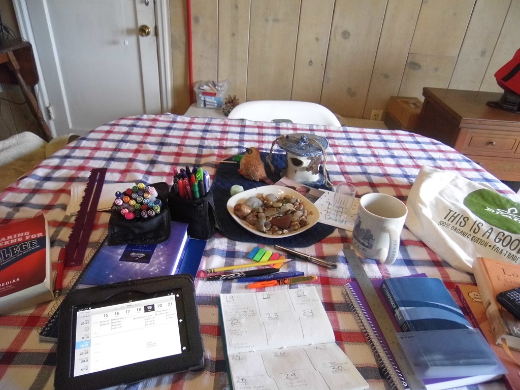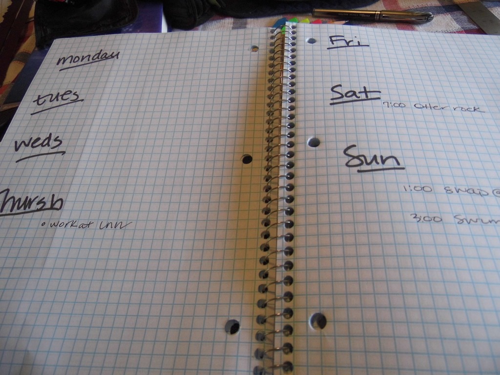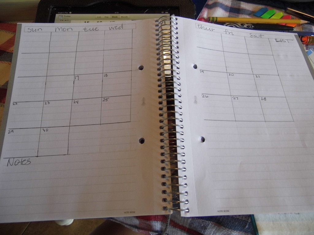 You’ll need to have calendars to plan ahead. I was tying to figure it out, so I used several notebooks this week to try out. The above one was a linen small book. The one below my favorite spiral prayer book.