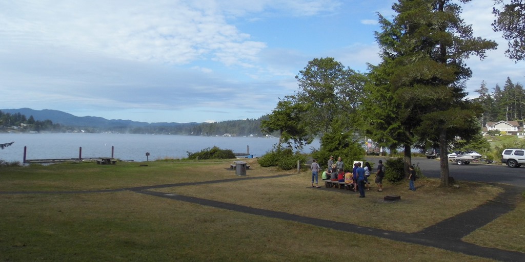 They are teaching the Jr. Leaders more tow in drills. Jon is riding a lil Lib Tech board here in the fog on the lake.