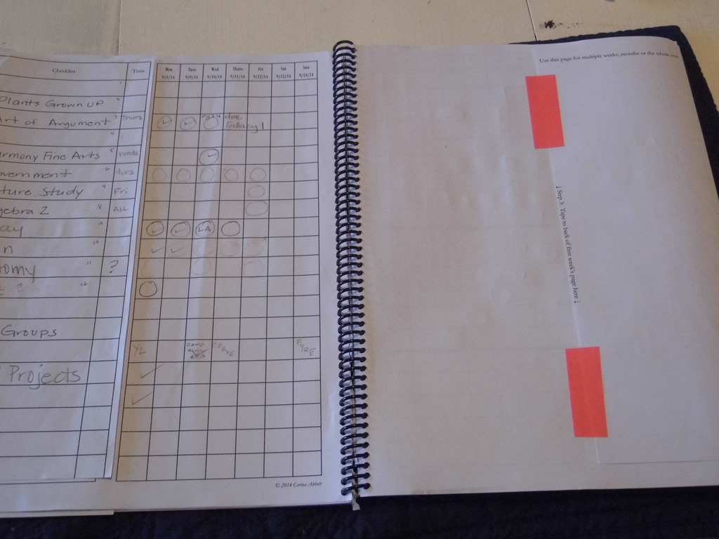 I wondered if we really needed the flap/checklist part. My decision is yes. It helps me focus on our resources available. Especially since we are reviewers, we are often changing resources for a goal – English, Science, Math – they need to know what needs to be used each day.