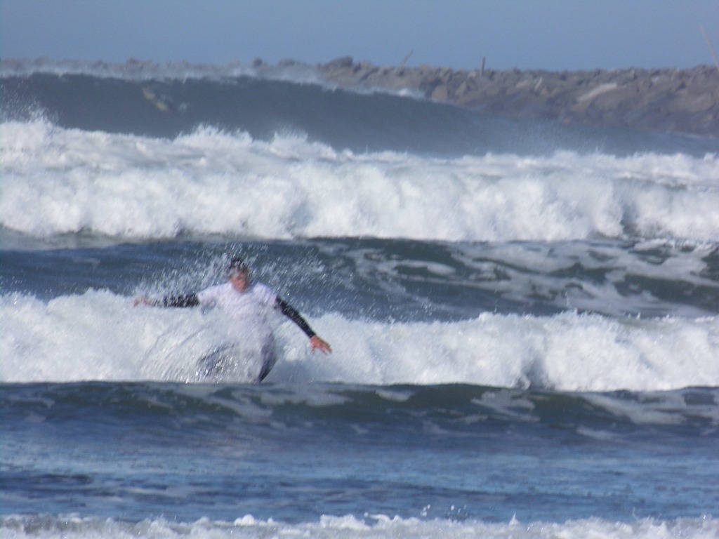 Jon went over to the “Groins” to find some surf. It was like a wave pool – kiddie pool. Every 5-10 minutes a nice head high set would roll in, but between that – simple 3-5 clean solid lines.