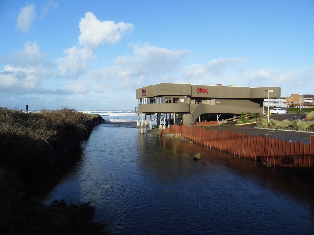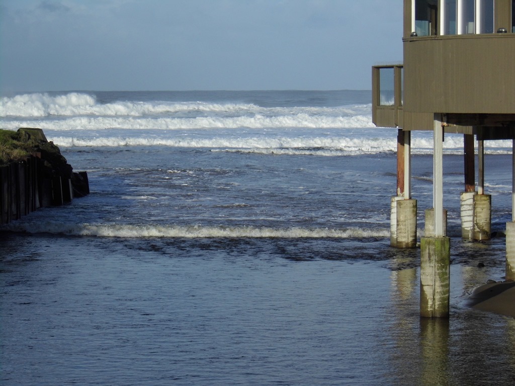 We had a call from a neighbor to invite Jon and I to surf the river mouth. When the ocean gets too big – large swells will come up the river. Usually we think of the larger rivers in Newport and the Salmon River. Instead – my friend said the D River (Shortest River in the World). I laughed but he was serious. The high swells (18-20 feet) and the high King tides were pushing waves up the river.
