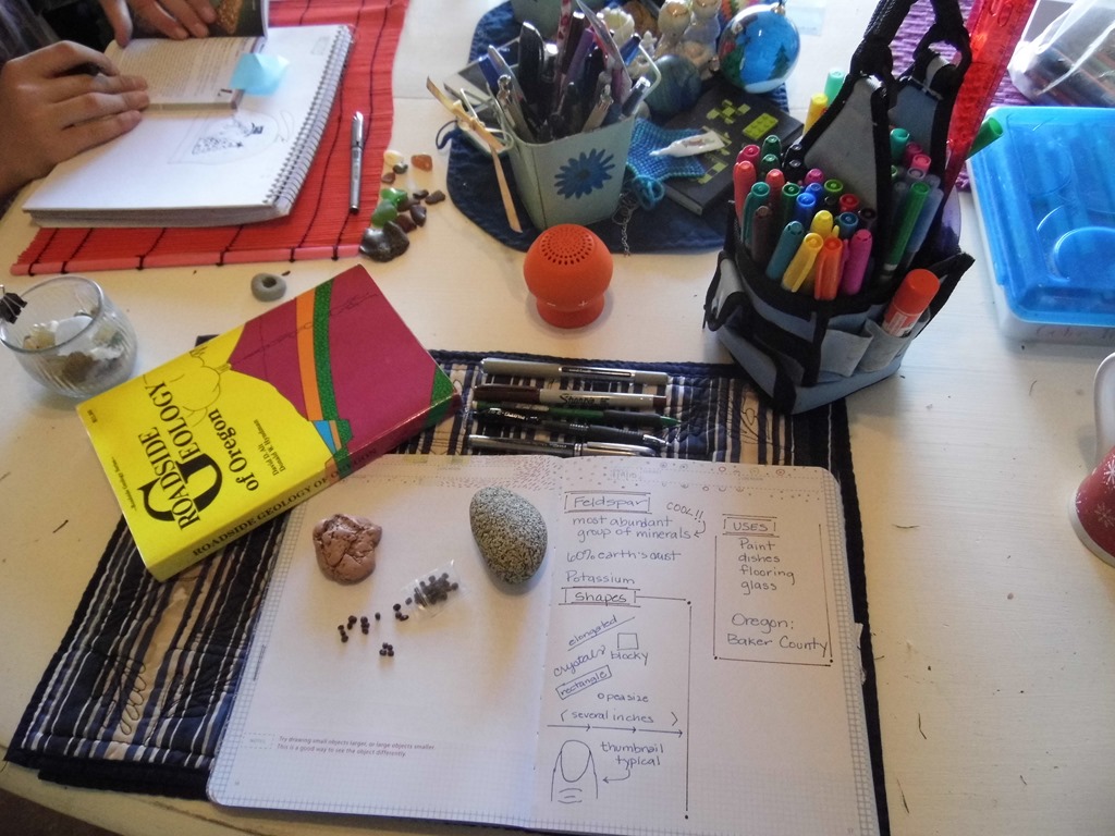 When we heard the name – Feldspar – we didn’t immediately come up with a color or shape or location. We had to look through several of our field guides to figure out if we had it in Oregon, on the Central Coast, and what to look for. It was interesting to find out that it makes up for 60% of the earth’s crust. We liked seeing how many items are made from crushed feldspar like paint, dishes, flooring, glass – etc. In Oregon, the most abundant place seemed to be Baker County, which is in Eastern Oregon.