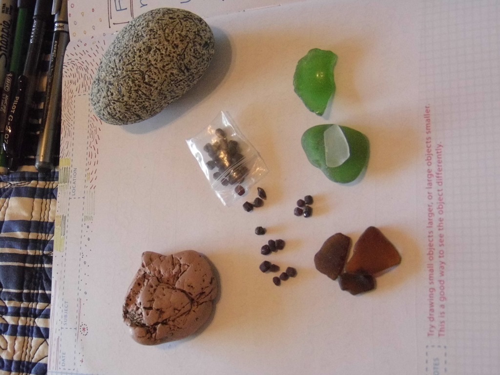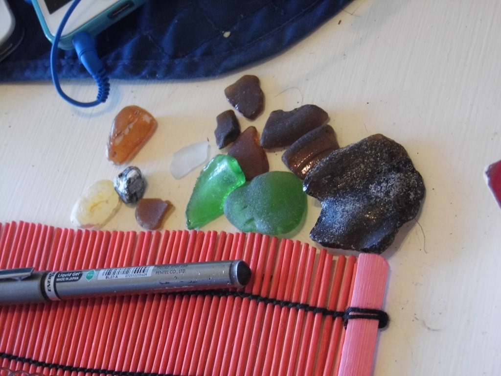 We collected Sea Glass since it is used to make glass. We discovered that Sunstone is Feldspar and we had some from a previous trip to a gem store. Sunstone is the Oregon State Gem. I like that Feldspar can be pink, so I put my pink rock in the collection.