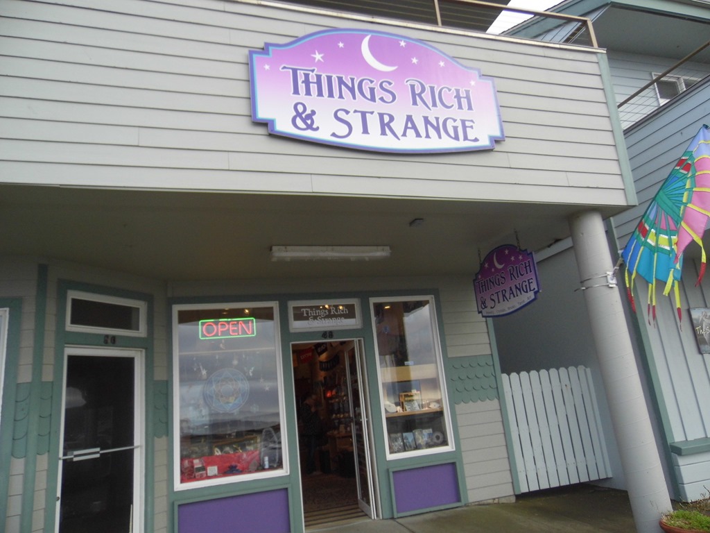 We saw a large ad in a newspaper that said Things Rich and Strange had Sunstone Jewelery. Holy Cow it is expensive! I didn’t take photos in the shop, but trust me – sparkle. We picked up a cube block of Feldspar for $3.00 – played with it for 2 days, and then it disappeared. . . . Ever heard of Depoe Bay? It’s a town built on a rock lava wall on Highway 101. It’s the sort of sacrifice we make for science. Yes, we’ll drive to Depoe Bay for Sunstone.