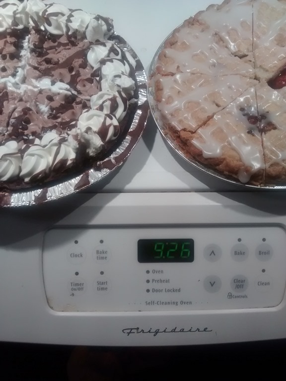 9:26 on 3-14-15? Oh ya. When the boys were little, we’d save March 14th as Pi Day. I’d cut out lengths of yarn and they’d measure every round object in the house. Finding Circumference, Diameter and Radius. It’s a fun day that usually ended in round food – including pie. This year we went with a Bacon Chicken Ranch Pizza from Figaros, a frozen/thawed Choco Cream Pie – and a fresh baked cherry almond pie. Mmm. No measuring, but lots of good food and a celebration of slicing the pie at 9:26.