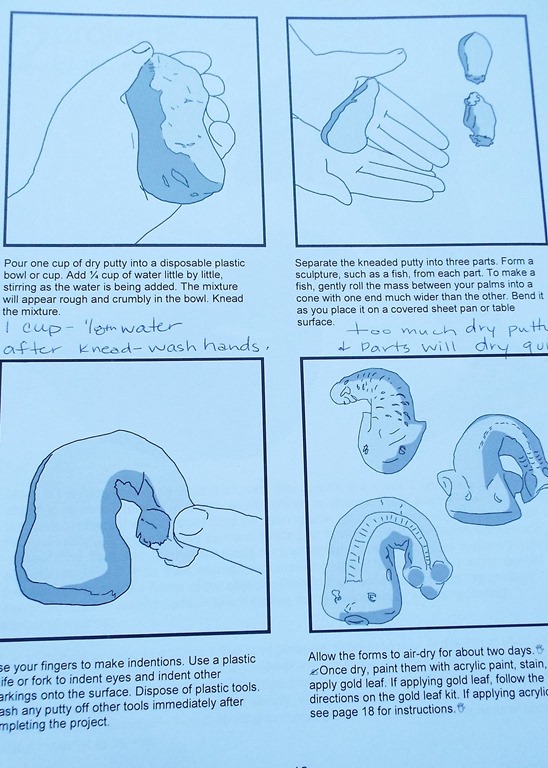 Jon enjoyed creating the putty. We are in the PNW at sea level – I’m not sure if that makes a difference if you are in a dry climate. We had to adjust our formula. 1 cup of putty to 1/8th cup of water. (Instead of 1/2). We found that if you add dry putty to the mixture, it will dry very quickly. Don’t skip the kneading part of the instructions, after you’ve found your desired consistency, wash your hands before starting on your project.