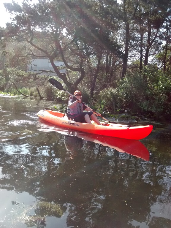 We paddled towards the Hospital for a quick start work out, then joined the kayak crowd to mosey down towards D River. The bridge there is the River, other side is the Pacific Ocean. If you look closely you’ll see the white wash of a wave under the bridge.
