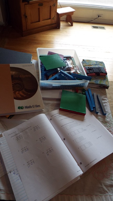 But this year – I’m a different teacher. Because I’m a learner. I have been taking PreAlgebra side by side with Jon and Mr. Demme. I didn’t realize how much I had stabbed myself in the foot by skipping this course with Nate. I had no idea that I would be needed through high school. So now I fully understand exponents, negatives, squares, and the power of 10 from the Decimals book – to now really understand the power of X for Algebra.