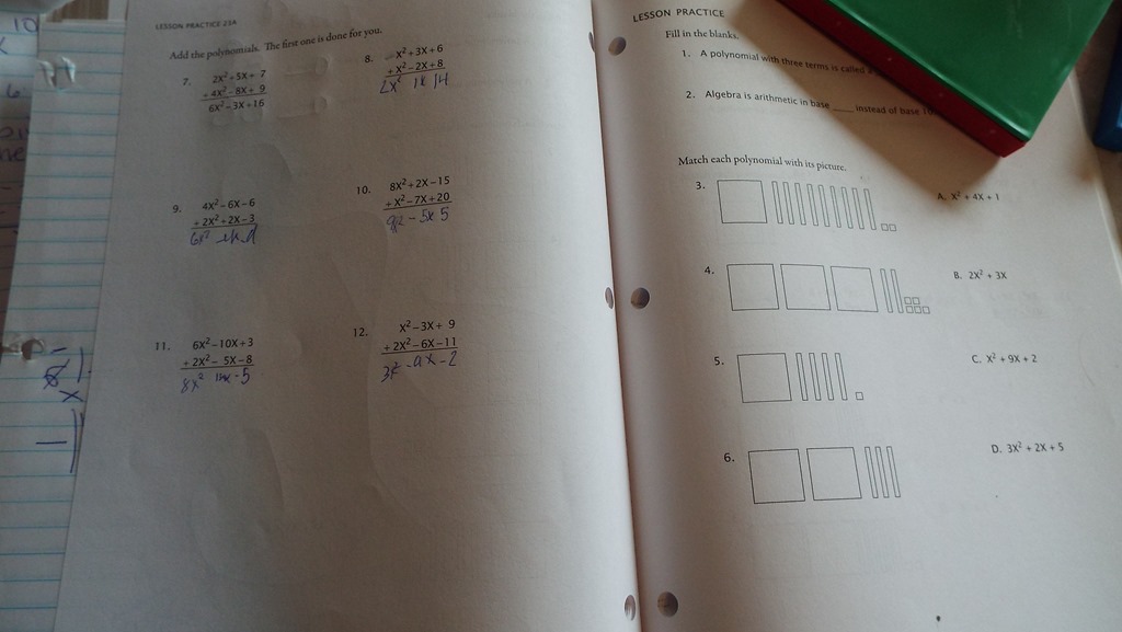 I asked Nate today if he remembered why polynomials were so hard. He shivered a little bit. I told him to look at Jon’s worksheet today and tell me if he could do it – and he said it wasn’t fair. Why does Jon get Mr. Demme so early? Ha.