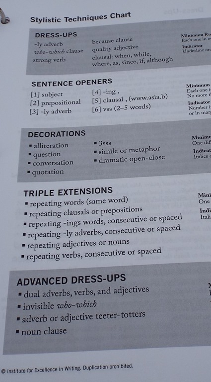 Stylistic Techniques – since I was helping Nate, I wanted a brush up. The biggest thing he stresses every time – This is Not a Formula! These are tools that will help add variety and depth to their writing for years to come.