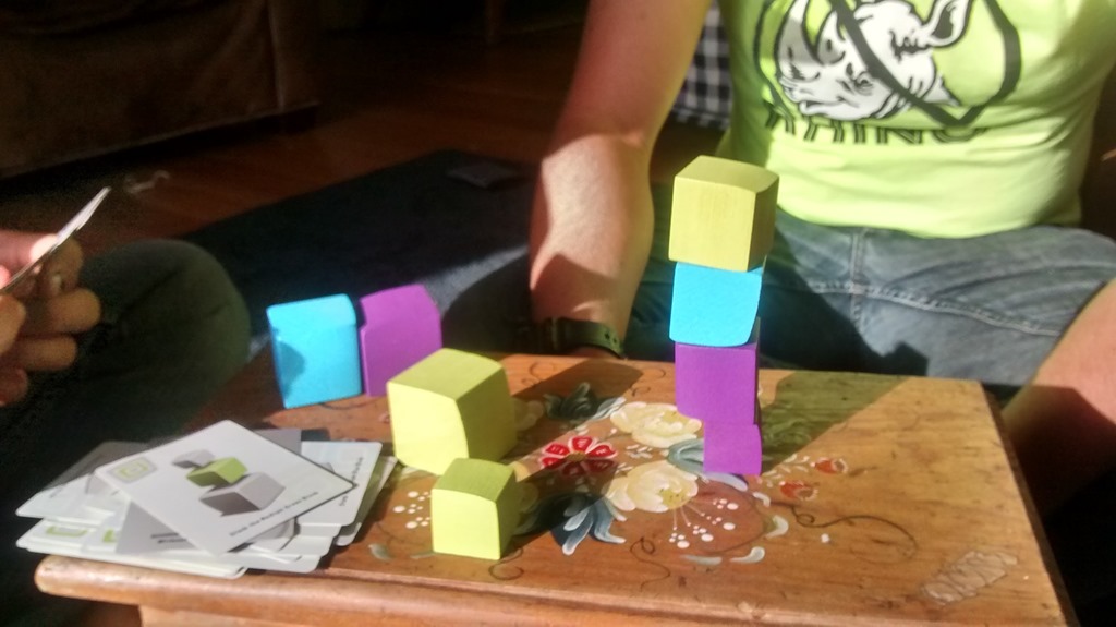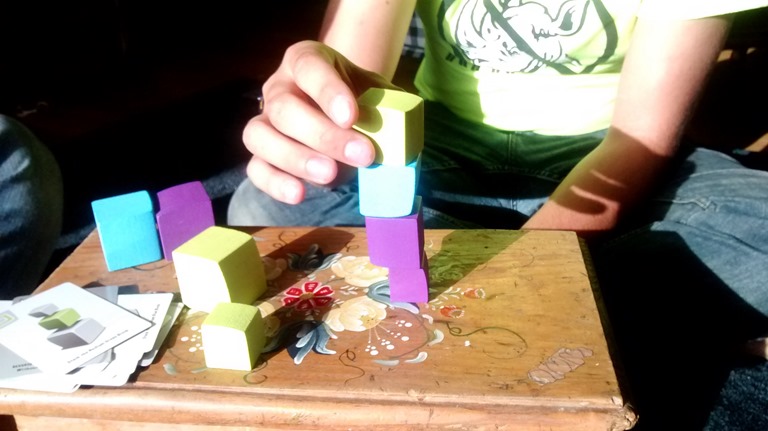 I kept loosing, my son kept building towers I couldn’t build on during my turn. First person to be rid of all of their cards is the winner.