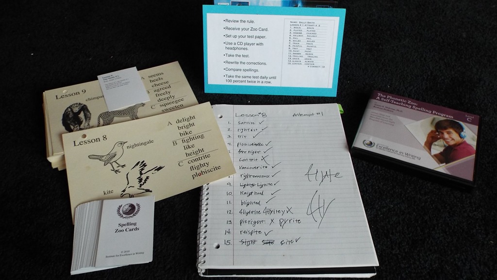 Phonetic Zoo stays with my love of Phonograms – you may watch Mr. Pudewa’s intruduction to Exellence in Spelling Here – Excellence in Spelling. You may also be interested in reading about their Multi-Sensory Approach, or fun words like Basic Neurophysiology (Why Nate and Jon learn spelling differently) and all of the other finer details of how the program works with this link to the Getting Started / Phonetic Zoo. This review will be more of a why we needed it, how we used it, what it has done for us, in my own words. The website has detailed information on exactly how and why it was created.