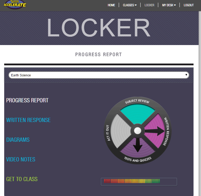 If it is not in the Locker, it won’t show up on the from to Grade. The locker above shows their progress reports, written response, diagrams, video notes – and the click to Get to Class.