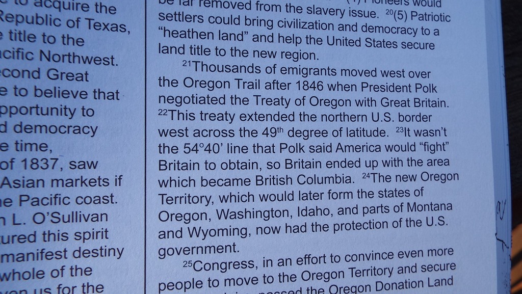 We learned the difference between Immigrants and Emigrants. Jon got to know about how the Lone Star Republic entered the union. We had some great conversations about how different it was. One of the few that was between the Colonies and Mexico, without Britian, France, or Spain being involved. He was glad that he know most of the information regarding the Oregon Trail.