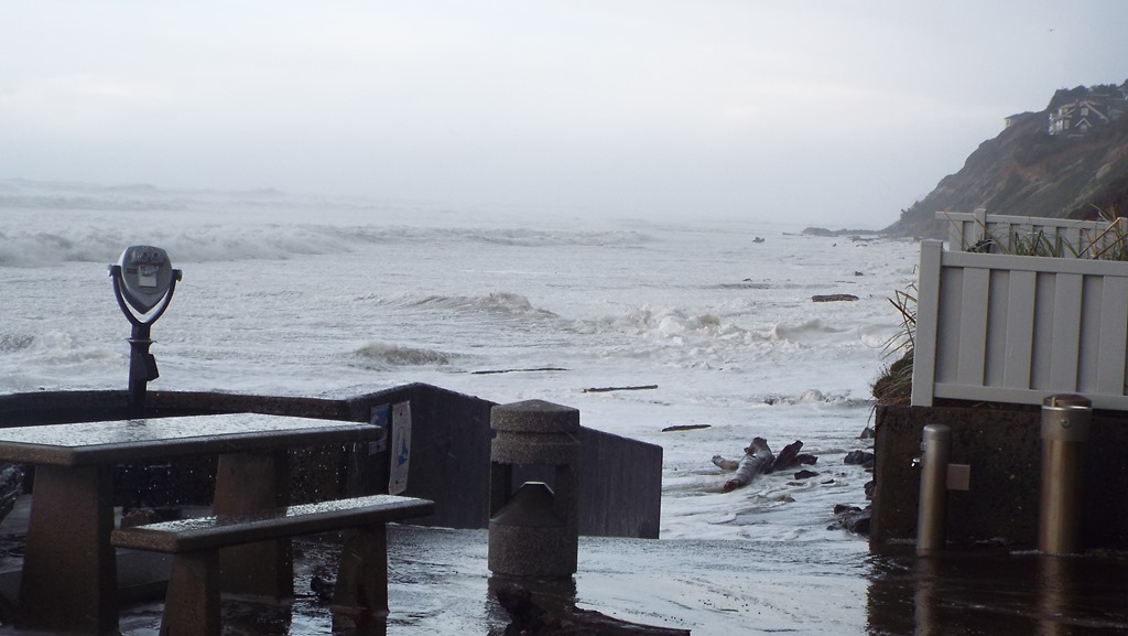 They had to close all of the public access parking lots since the ocean was at the top of the sea wall, and debris was flying over into the yards and parking lots.