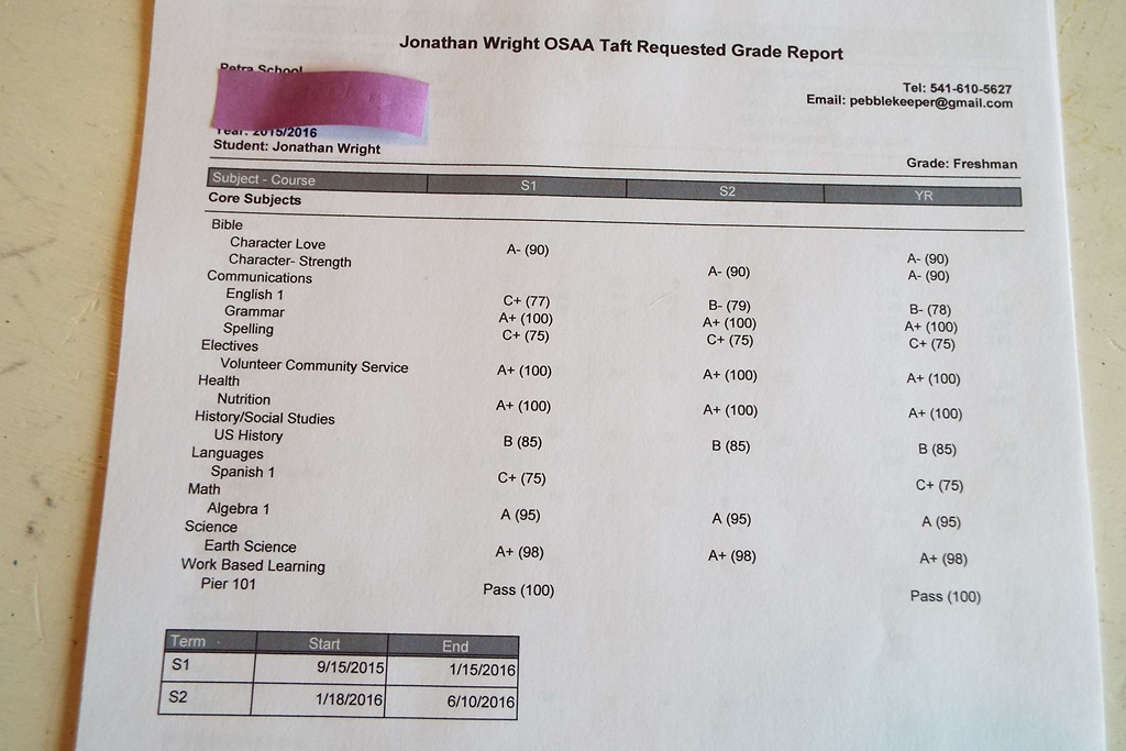 What about Grades? For Nate – it was easy – he made 100% on everything he did. He never moved on without figuring out the last step.