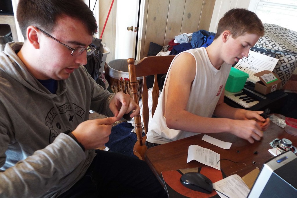For the seceond installment – big brother Nate was home from college and thought he’d sit in. There is enough instruction on the videos, step by tiny step, that no outside help is required – but any male in the house is unable to stay away.