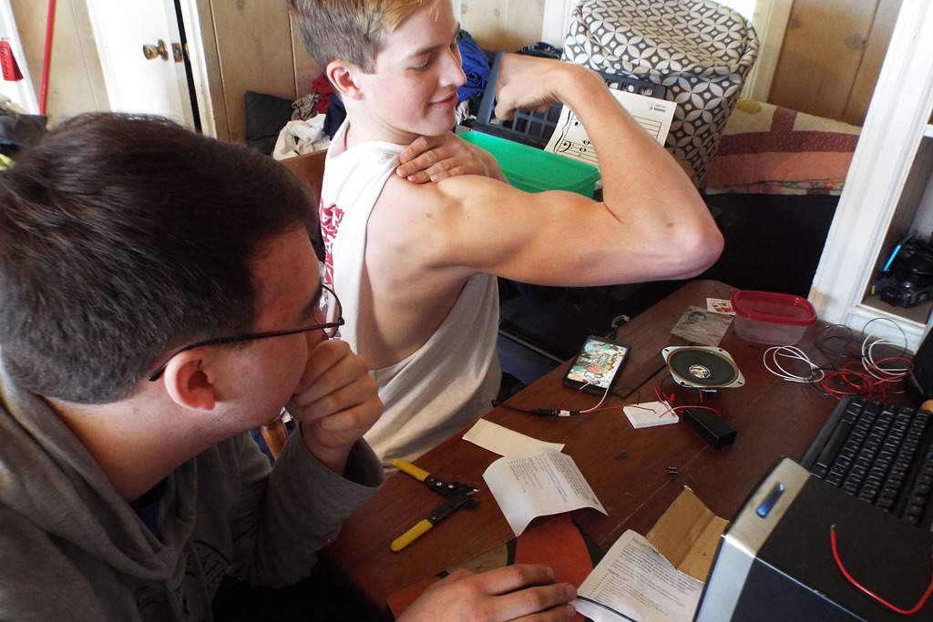 I know when my 18 year old son is on his way home, as I can hear his music about a quarter mile away. We tease that we can hear him when he turns off the high way. When he pulls up to the house he has an ‘under 8 second rule’ for turning off the stereo. At first it was to be respectful if our neighbor is in town, but now it is to make sure our windows don’t break. My boys have an obsession with speakers, wires, music, amps, bass, – the whole thing. Trouble is, they’ve ‘winged it’ with their learning so far. When the speakers are tested for the first time, it is usually during held breath – and heart pounding – while waiting to see if sound will come.