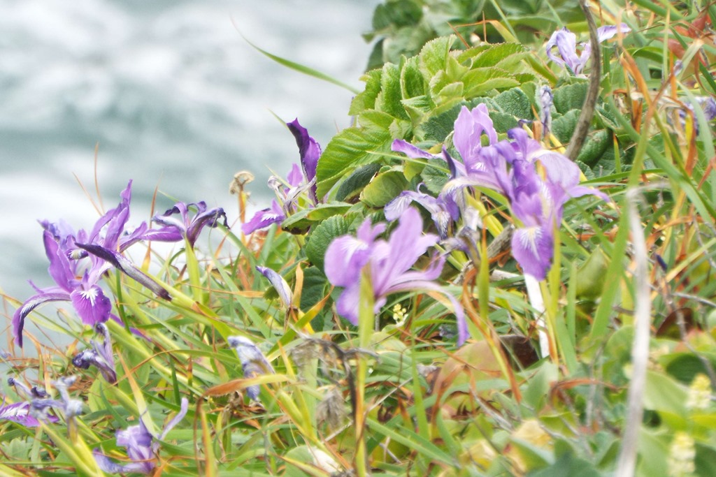 I leave you with a little photo from yesterday. These purple iris flowers are growing all over the cliffs above the ocean. They area all only 2-4 inches high. The blue in the background is the Pacific Ocean. Maybe I have just never spent so many hours on cliffs watching Jon surf fish, or maybe just not this time of year – but I’ve never seen so many beautiful purple flowers on cliffs before!