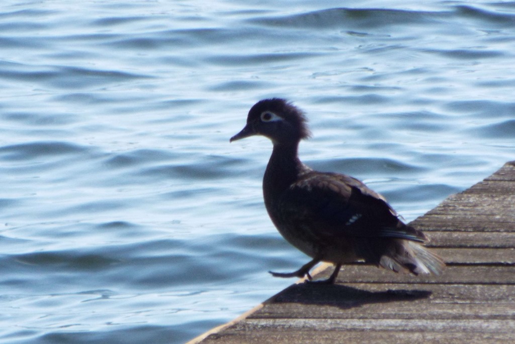 I was getting ready to look it up, when he came through and saw the photo. “I took that mom, there are more on your memory card. She looks like a female wood duck. I’ve not seen one on the dock and I knew you’d want to see it.”