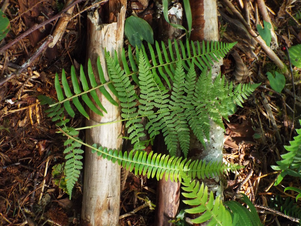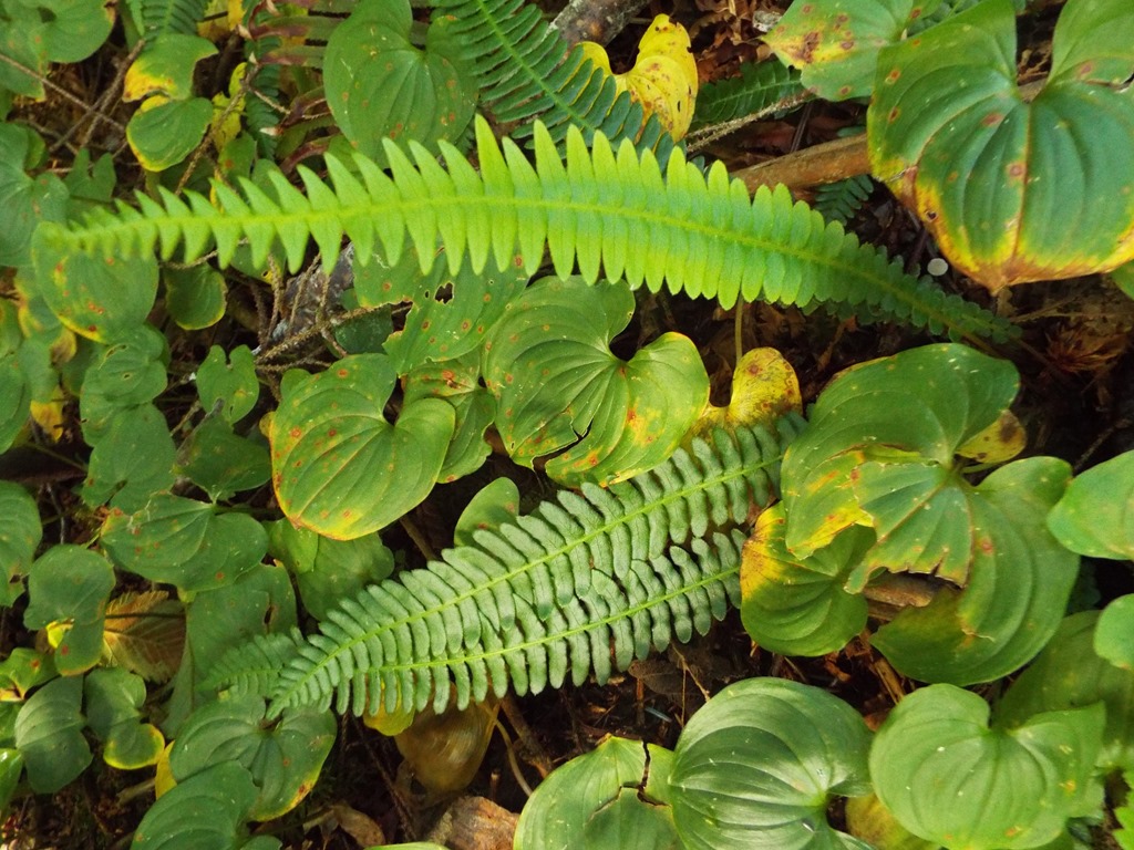 Later, along the trail, we found it again. We had been in several habitats. Along a field that he been cleared – bracken fern. Then along a river and dark covered mossy woodland area, then along a path up a tall hill.