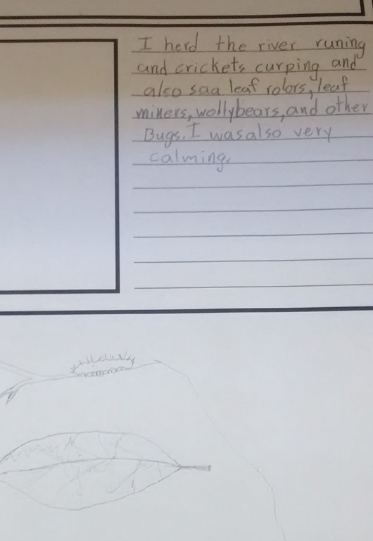 The Bookmobile came to the school and interrupted the class – so lost a half an hour of the OHC time – we did get time to work on our Nature Notebooking Pages, but didn’t get to look under the microscope or look up what we found in the field guides or use the computers.